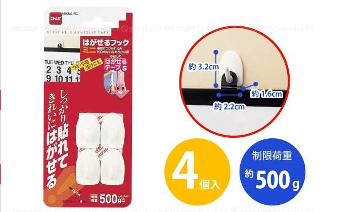名稱:可揭式掛鉤 迷你型(白色)